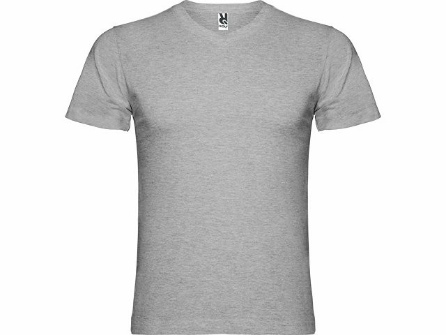 Мужская футболка без боковых швов с коротким рукавом и V-образным вырезом горловины, отделанном рибом 1х1. Горловина и плечевые швы дополнительно укреплены тесьмой.