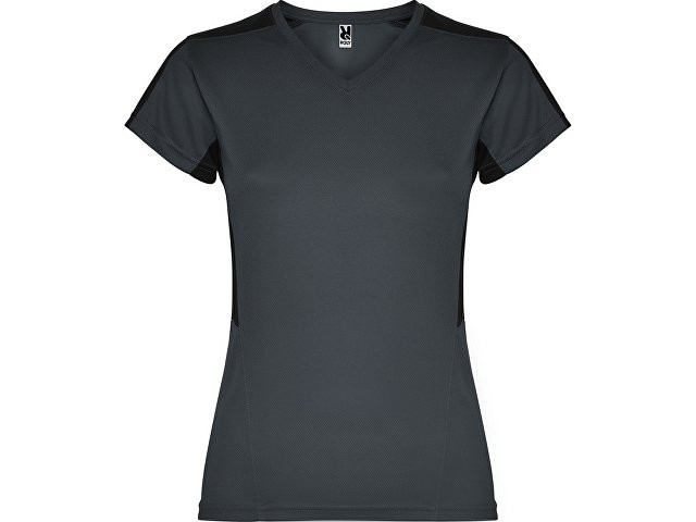 Женская футболка с коротким рукавом. V-образная горловина. Комбинация из 2 полотен контрастного цвета: структурное полотно на полочке и дышащая 3D сетка на плечах и боках.