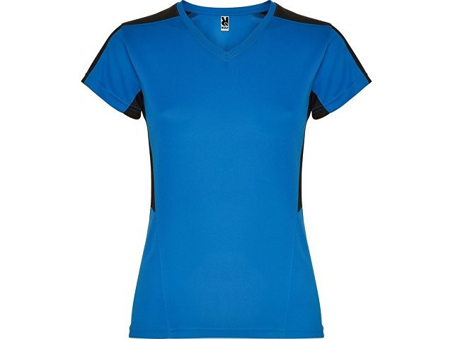 Расчет нанесенияЖенская футболка с коротким рукавом. V-образная горловина. Комбинация из 2 полотен контрастного цвета: структурное полотно на полочке и дышащая 3D сетка на плечах и боках.