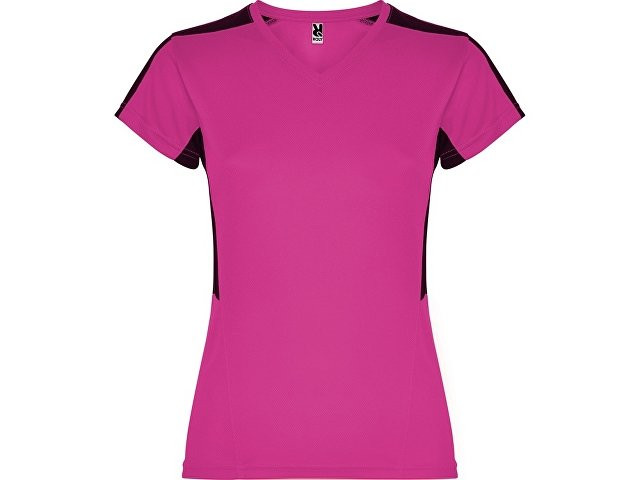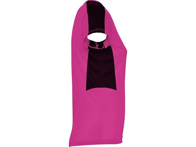 Расчет нанесенияЖенская футболка с коротким рукавом. V-образная горловина. Комбинация из 2 полотен контрастного цвета: структурное полотно на полочке и дышащая 3D сетка на плечах и боках.