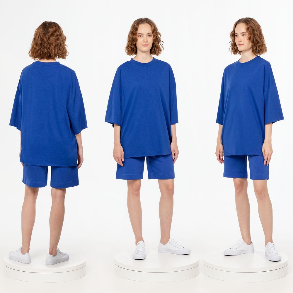 Футболка унисекс свободного кроя со спущенным плечом.