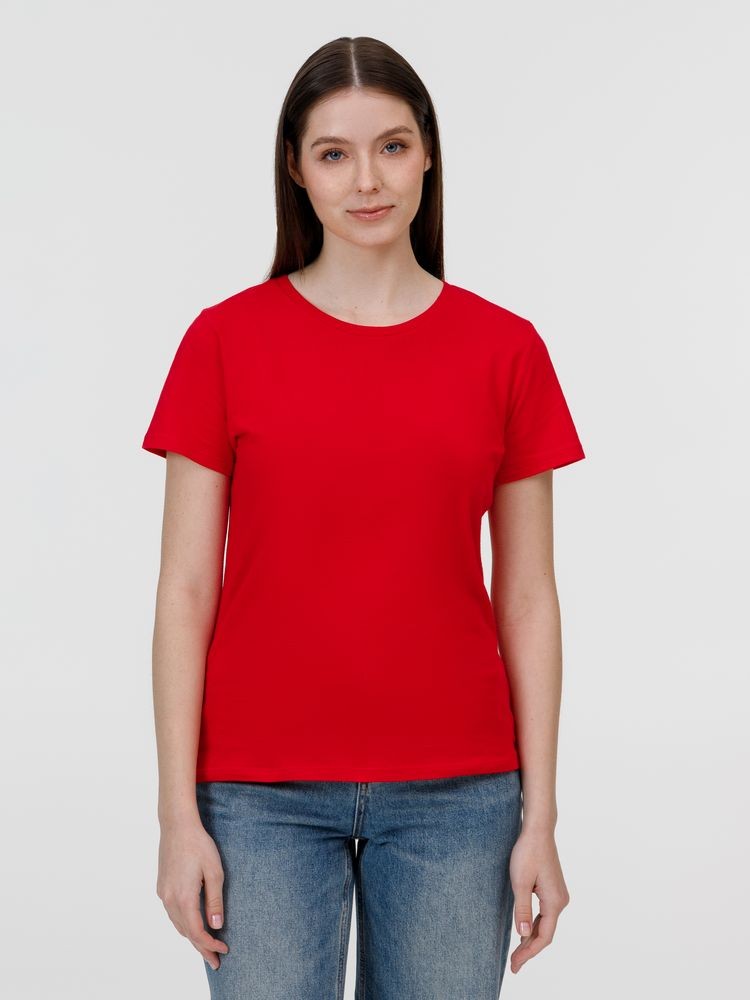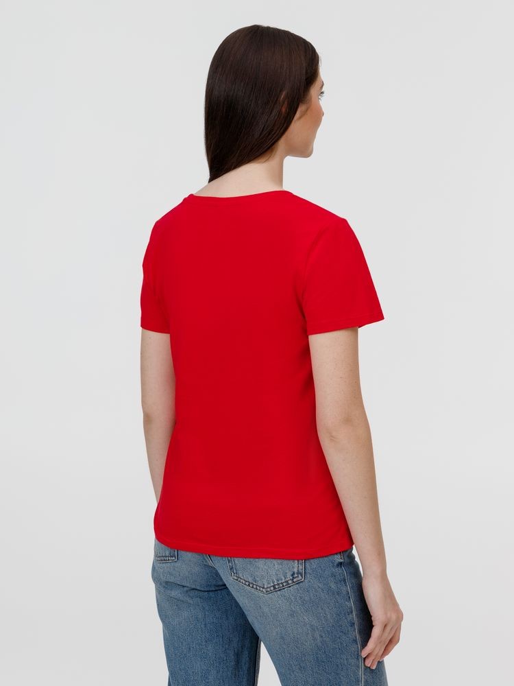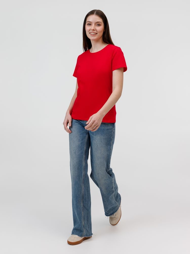 Кроеная женская футболка приталенного силуэта с круглым воротом.