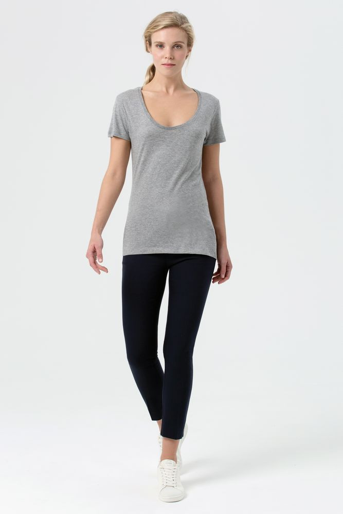 Воротник выполнен резинкой 1х1 с эластаном. Укрепляющая тесьма по вороту.