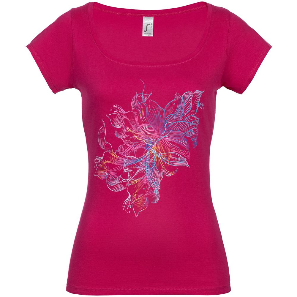 Футболка женственного приталенного силуэта с американской проймой и глубоким вырезом, отделанным обтачкой из джерси. Двойная прострочка на вороте спереди, на рукавах и по низу.