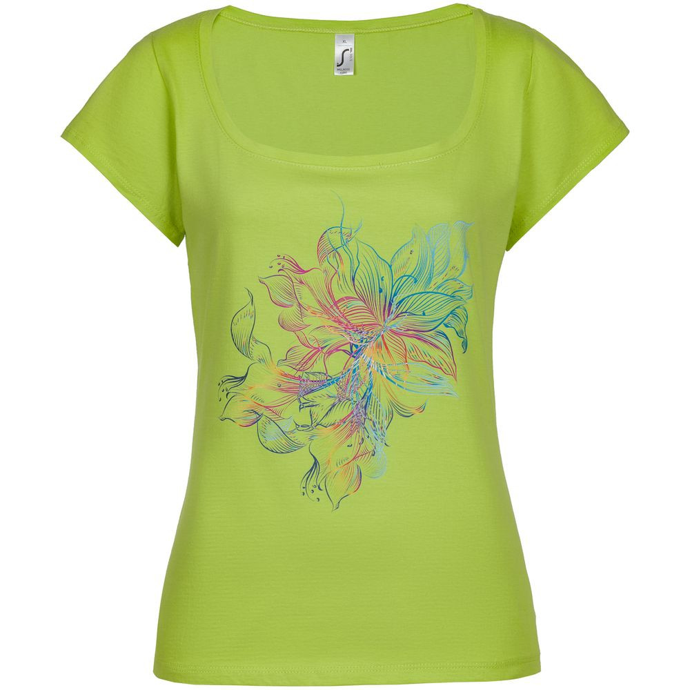 Футболка женственного приталенного силуэта с американской проймой и глубоким вырезом, отделанным обтачкой из джерси. Двойная прострочка на вороте спереди, на рукавах и по низу.
