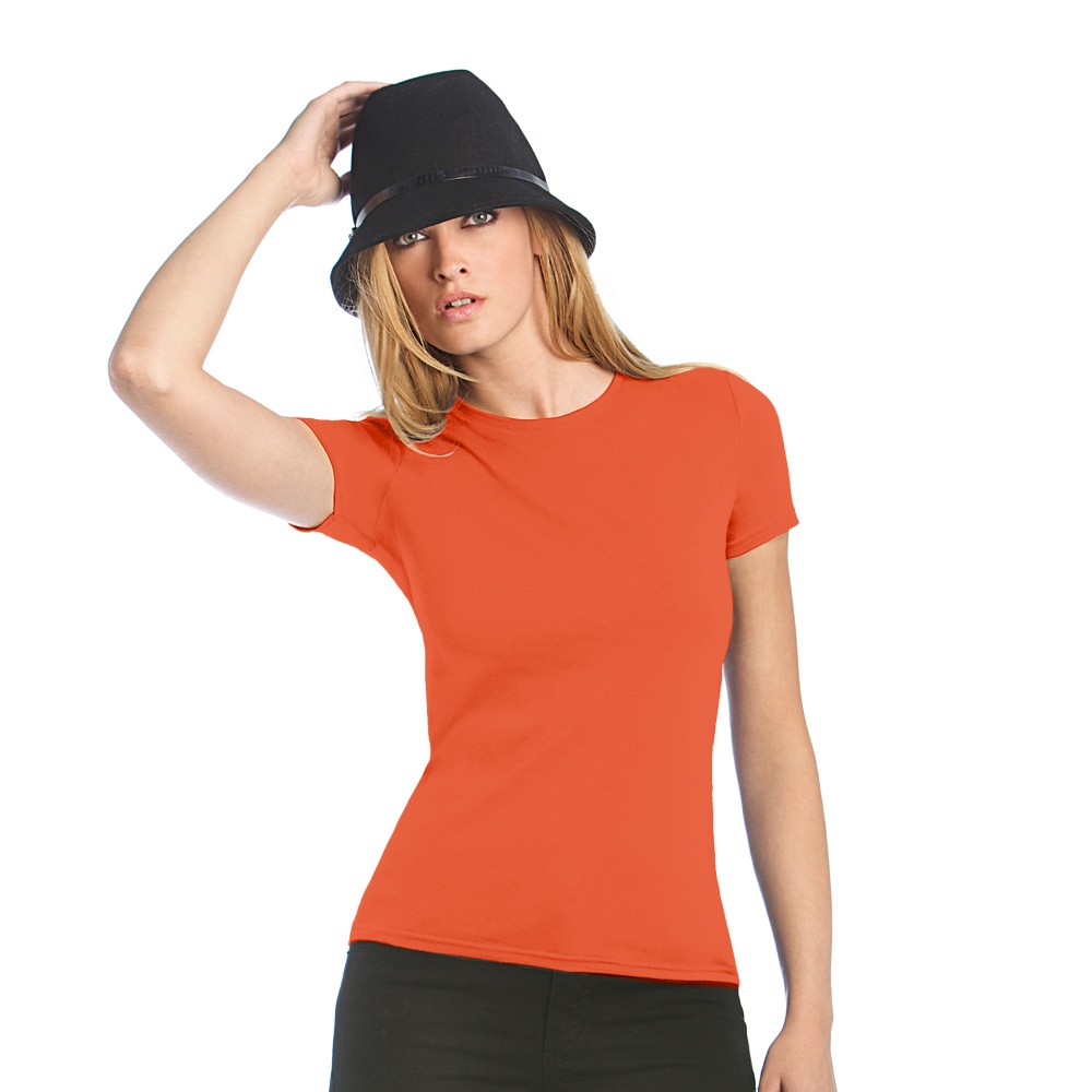 Футболка женская, приталенная, с боковыми швами, плотностью 145 г/кв.м.; тонкая линия воротника.