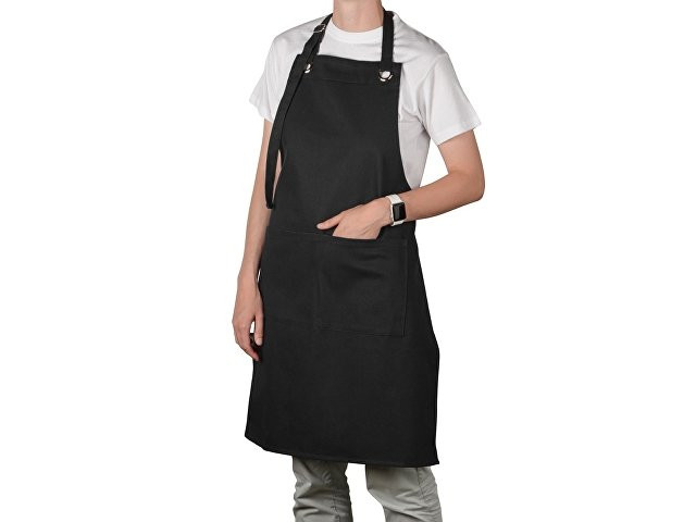 Хлопковый фартук Delight с карманом и регулируемыми завязками, черный