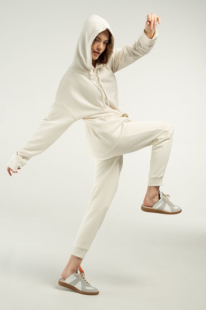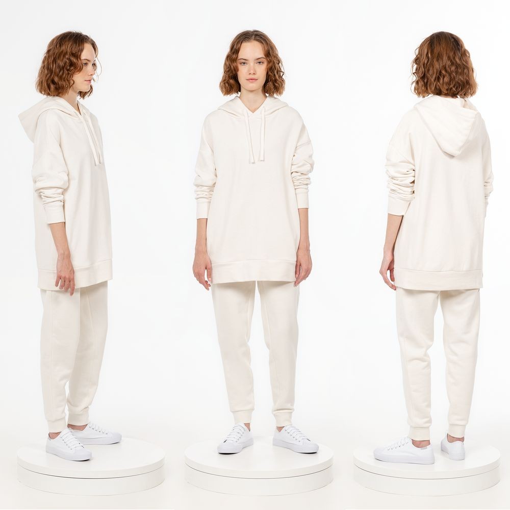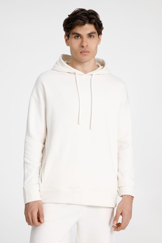 Худи унисекс свободной посадки со спущенным плечом.