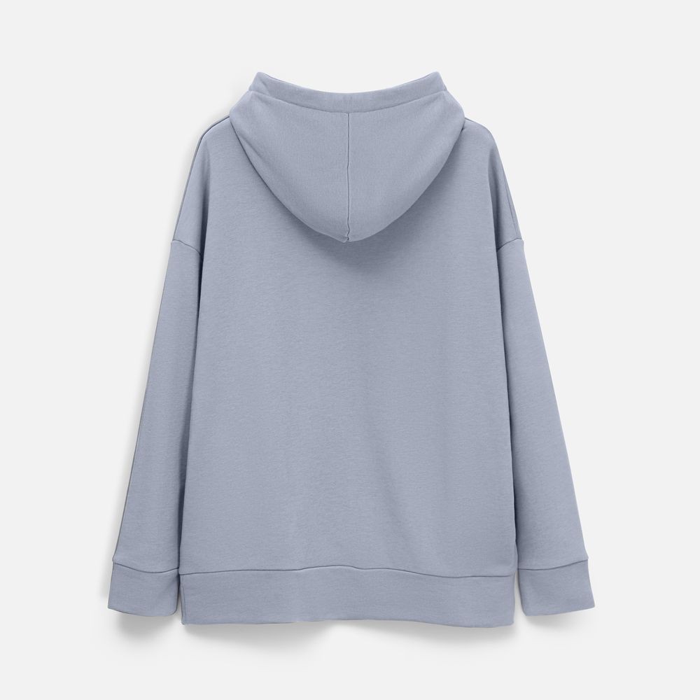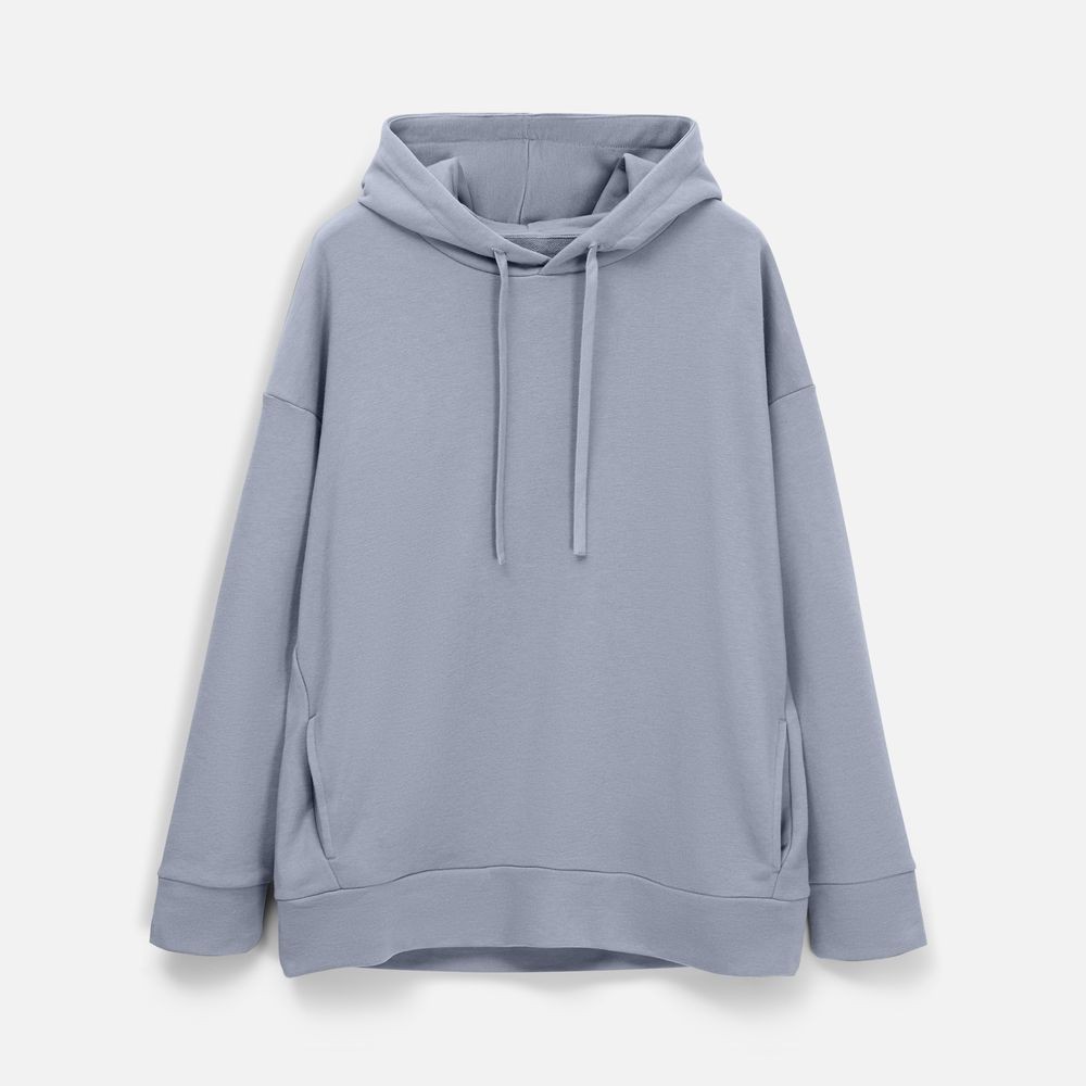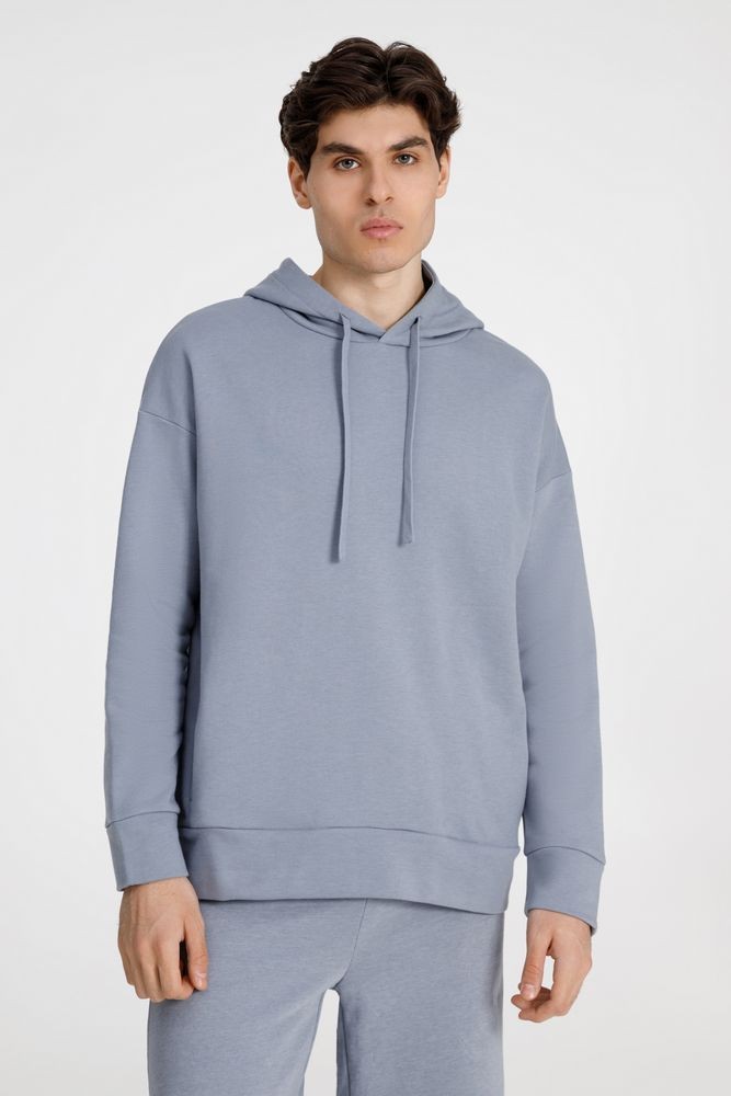 Худи унисекс свободной посадки со спущенным плечом.