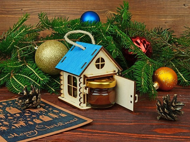 Подарочная упаковка “Домик” выполнена в виде игрушки, которую легко можно поставить на стол, шкаф или повесить на стену. Ее также можно использовать, как елочное украшение или новогодний подарок. Она изготовлена из экологически чистых материалов и обладает чарующим древесным ароматом. В домике открывается дверца, и в него можно поместить небольшую баночку с медом или вареньем. Яркие цвета крыши домиков и эффектная конструкция помогут украсить любой интерьер, как в офисе, так и в квартире. Подарочная упаковка “Домик” позволит вам сделать оригинальный и запоминающийся подарок для руководителя или коллеги.