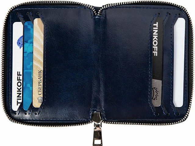 Футляр для 8 пластиковых карт и наличных денег на молнии с RFID защитой, которая охраняет вашу личную и финансовую информацию от мошенников.