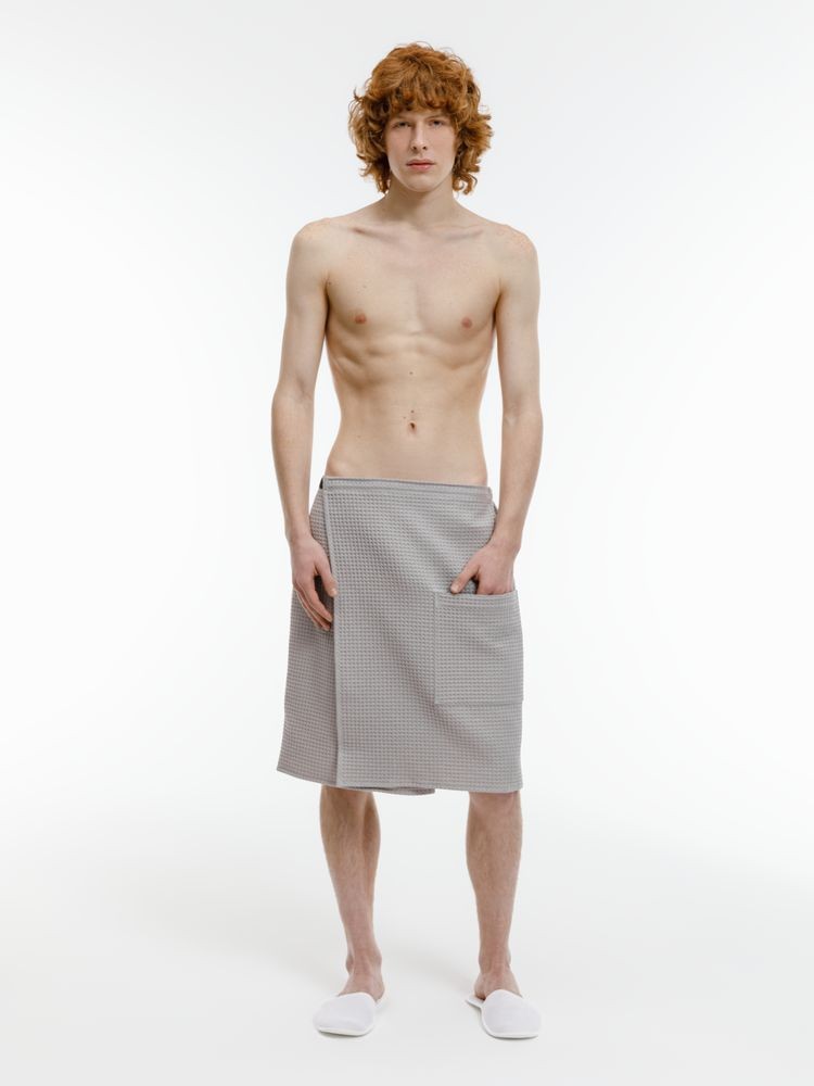 Мужской килт для бани на липучке, которая позволяет регулировать размер. Спереди удобный карман.