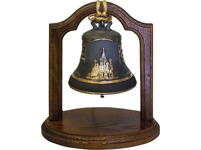 Колокол сувенирный весом 1кг "Всея Руси" на дубовой подставке. Поверхность колокола черненая с вызолочением. Настольные колокола делают те же производства, что льют и большие колокола для российских церквей. Поэтому они и звучат тем неповторимым “малиновым” звоном, который всегда ценился в отечественных колоколах. Настольный колокол - это ни только прекрасная интерьерная композиция, но и просто “живая” частичка России. Ударьте в него, закройте глаза и слушайте, слушайте...