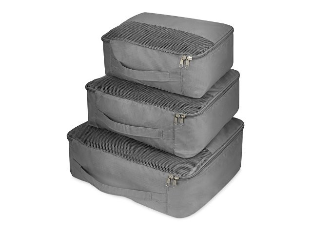 Набор упаковочных сумок – функциональный аксессуар для эргономичного упаковывания различных предметов в багаже. Комплект содержит три чехла разных размеров, удобных для рассортировки и складывания вещей в чемодане или дорожной сумке. • Изделия изготовлены из прочной, но легкой ткани рипстоп и не утяжеляют багаж. • Сумки удобны в пользовании: их верхняя часть полностью откидывается, облегчая упаковывание вещей, и застегивается на молнию. • Сетчатая вставка сбоку позволяет увидеть содержимое, а удобная ручка – вытащить ту из сумочек, в которой находится нужная вещь. • Практичный набор будет полезен не только в путешествии, но и дома для эргономичного хранения вещей в шкафу.
