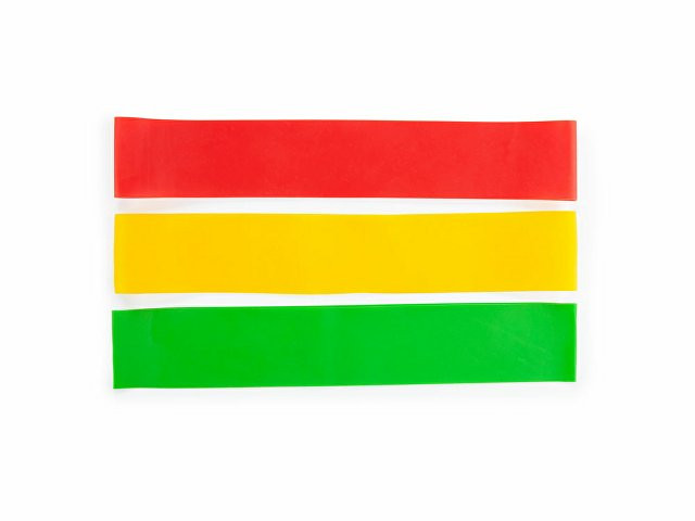 Комплект эластичных лент для фитнеса с разным сопротивлением из полиэстера. Размеры ремешков: 30 х 5 см.