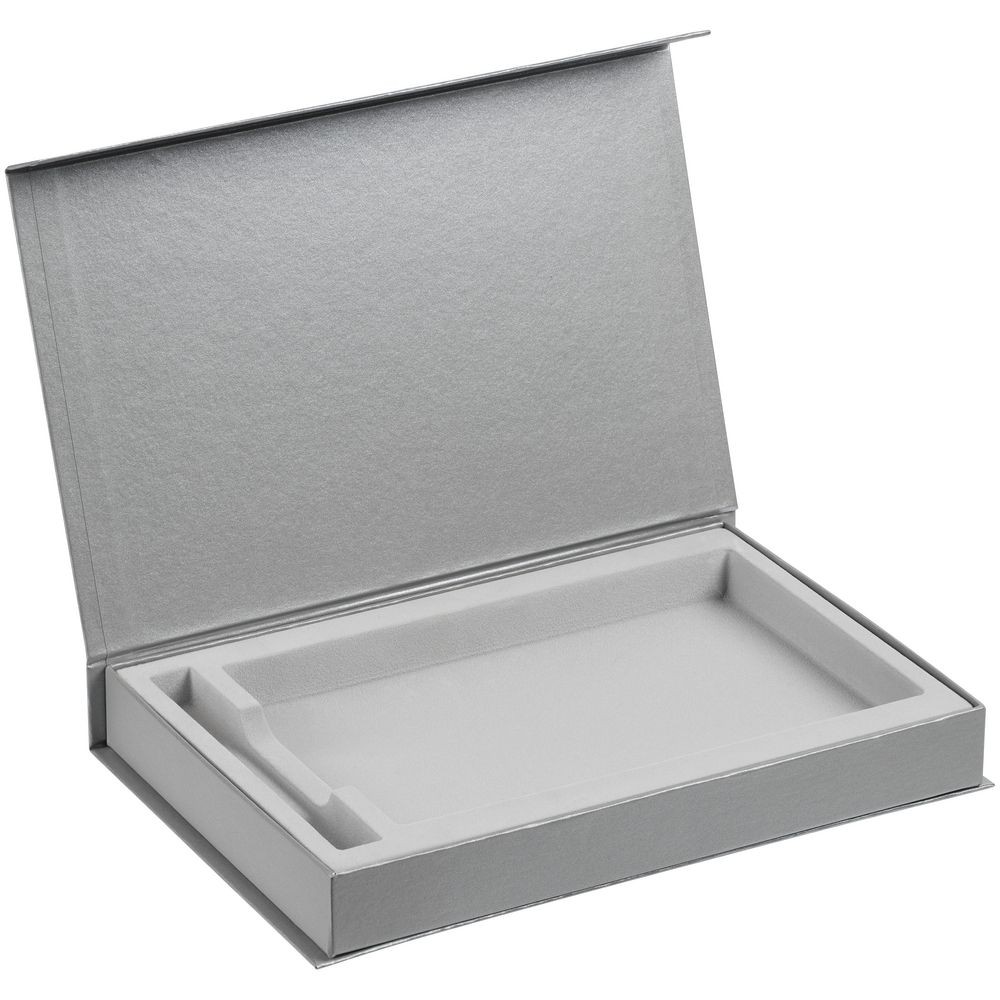Коробка Silk с флокированным ложементом под ежедневник и ручку, ver. 2, серая