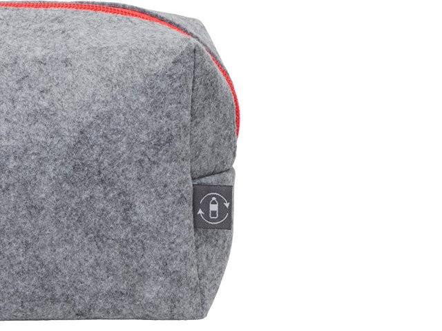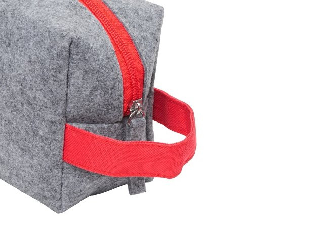 Косметичка из РПЕТ фетра с ручкой "Felt", серый с красным