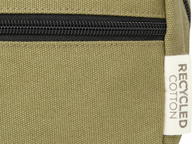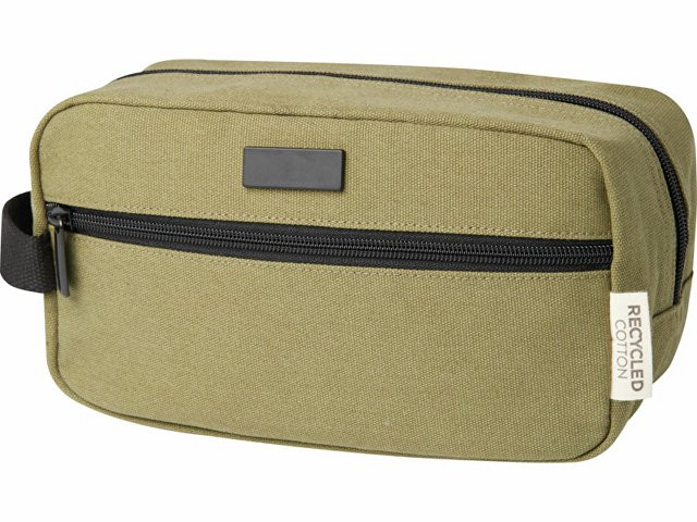Косметичка из переработанного холста, сертифицированного по стандарту GRS, с подкладкой из переработанного РЕТ-пластика. Имеет передний карман на молнии и одно главное отделение на молнии с карманами для организации, а также удобную лямку. Декоративная металлическая пластина может придать логотипу сияние благодаря утонченному матовому покрытию. Емкость: 3,5 литр.
