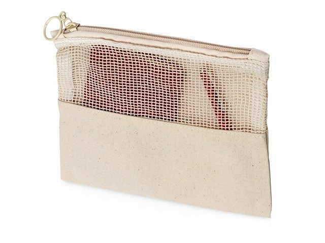 Вместительная хлопковая косметичка на молнии с сетчатой вставкой удобна для хранения личных вещей, косметики и гигиенический принадлежностей дома или в путешествии.