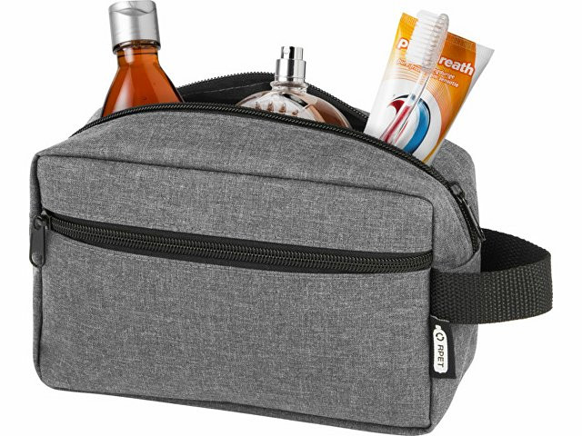 Косметичка Ross — идеальный спутник для путешествий для ношения предметов гигиены и косметики. Изготовлена из переработанного полиэстера, сертифицированного согласно GRS, что делает ее более экологичным выбором. Имеет основное отделение на молнии, передний карман и плетенную петлю. Емкость: 1,5 литр.