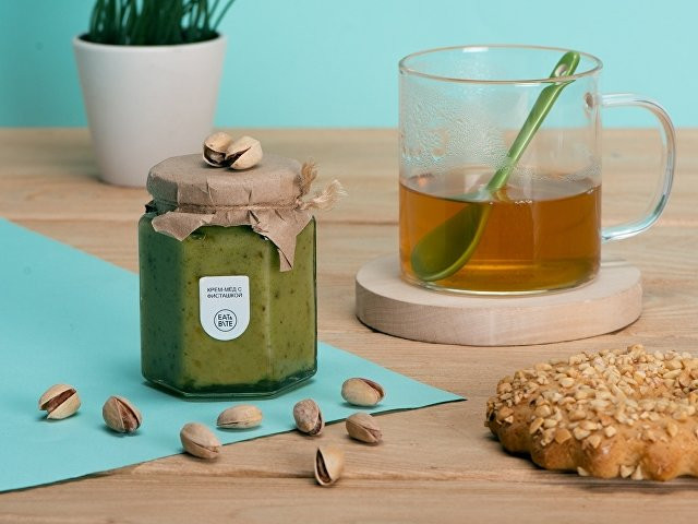 Расчет нанесенияКрем-мёд это настоящий десерт для сладкоежек. Благодаря своей структуре он идеально подходит как топпинг, который легко намазать и не бояться, что он растечется по тарелке. Фисташка придает крем-мёду нежнейший вкус крема-пралине.