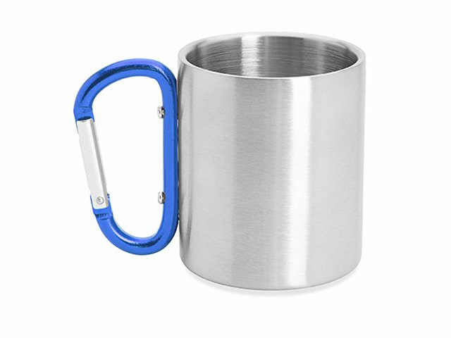 Кружка GUAYA с ручкой карабином, 230 мл, серебристый/королевский синий