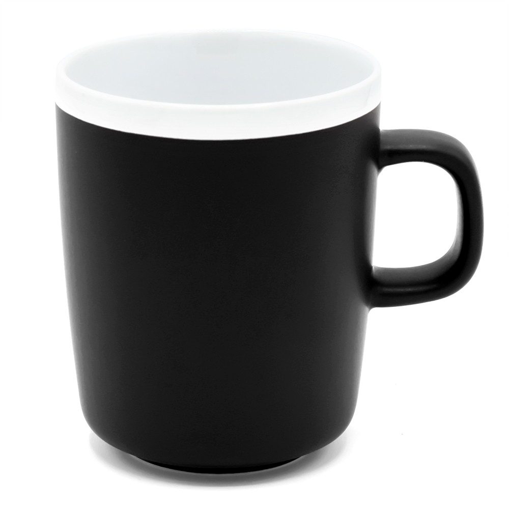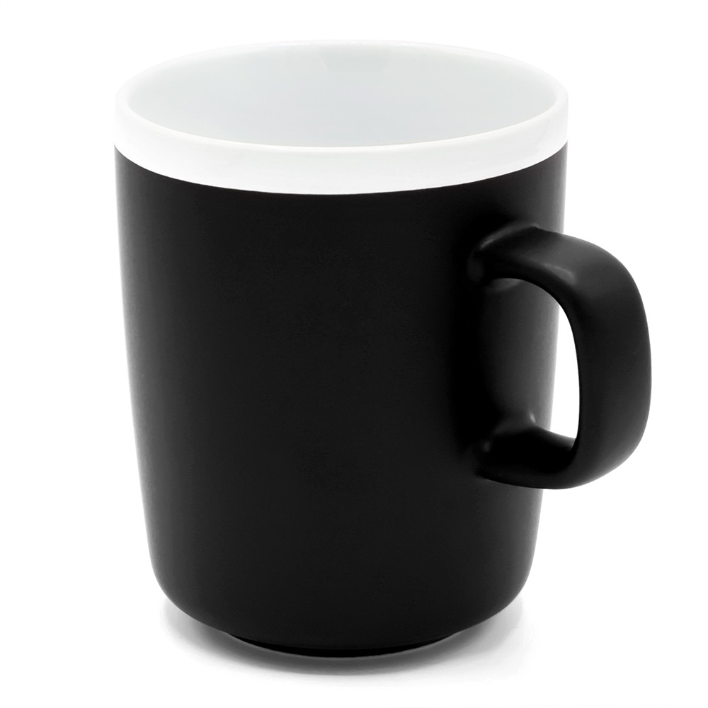 Матовая поверхность с белым глянцевым ободком по краю создаёт контраст и привлекает внимание. Благодаря лаконичной форме и эргономичной ручке кружку удобно держать в руке. Кружка доступна в различных цветах. Подходит для горячих и холодных напитков.
