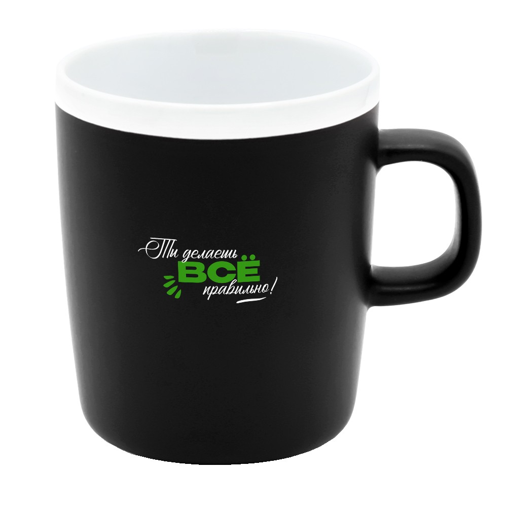 Расчет нанесенияМатовая поверхность с белым глянцевым ободком по краю создаёт контраст и привлекает внимание. Благодаря лаконичной форме и эргономичной ручке кружку удобно держать в руке. Кружка доступна в различных цветах. Подходит для горячих и холодных напитков.