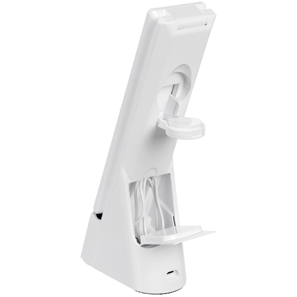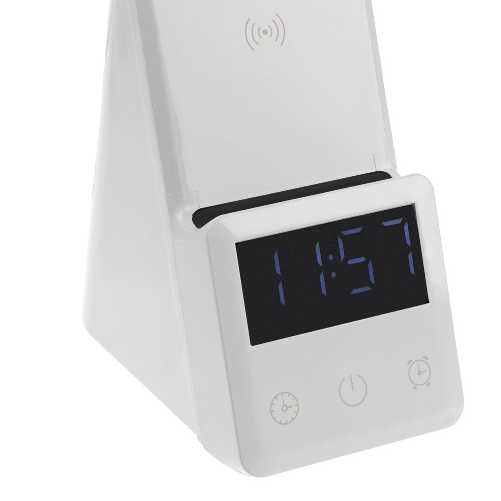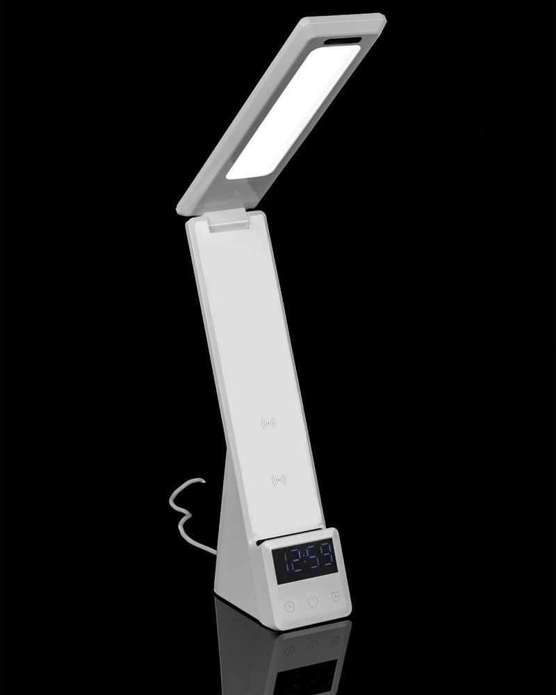 USB-порт для проводной зарядки расположен в задней части корпуса. Часы позволяют следить за временем, а будильник — настроить время пробуждения или напоминания о необходимости завершить задачу.Свет от лампы настраивается под индивидуальные потребности: он может быть теплым, холодным или смешанным.