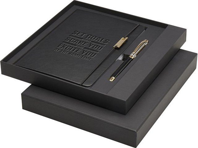 Legato — это элегантное сочетание блокнота формата А5 и ручки-роллера. Ручка имеет верхний корпус из переработанной латуни с золотым хромированием, нижний корпус с черно-коричневым напылением, металлические хромированные аксессуары из золота и логотип LUXE на среднем кольце. Цвет чернил: черный. Длина непрерывной линии: 400 метров. Размер пера: 0,7 мм. В блокноте 80 листов разлинованной бумаги плотностью 80 г/м², обложка из переработанного пластика, эластичная застежка, закладка-лента и карман-гармошка. Металлический аксессуар из хромированного золота на эластичной застежке. Поставляется в подарочной коробке из переработанного картона. FSC certified paper, Recycled brass. #?0:>2:0: FSC Mix Credit P5.1 CU-COC-877277. FSC Mix Credit P7.1 CU-COC-877277.