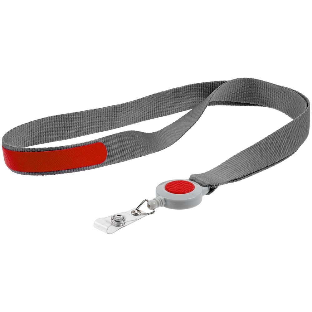 Лента для бейджа с ретрактором Devon, серая с красным