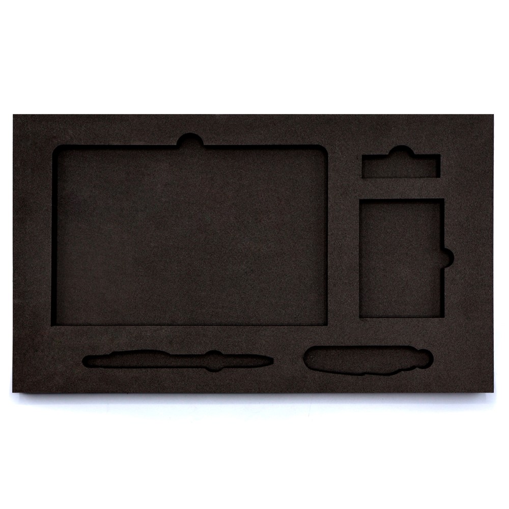 Ложемент, выполненный из черного ЭВА материала, представляет собой многослойную конструкцию, состоящую из 3х слоев: нижнего толщиной 5 мм, среднего 10мм, и верхнего — 10 мм. Согласно утвержденному макету, проемы для размещения предметов могут быть расположены во всех 3 слоях. Финальная стоимость ложемента зависит от параметров вашего будущего ложемента, выбранных в калькуляторе карточки. Возможная площадь вырезки ложемента - от 1см2. Пожалуйста, прикрепите к заказу оригинал-макет в формате .pdf