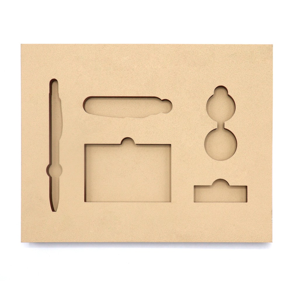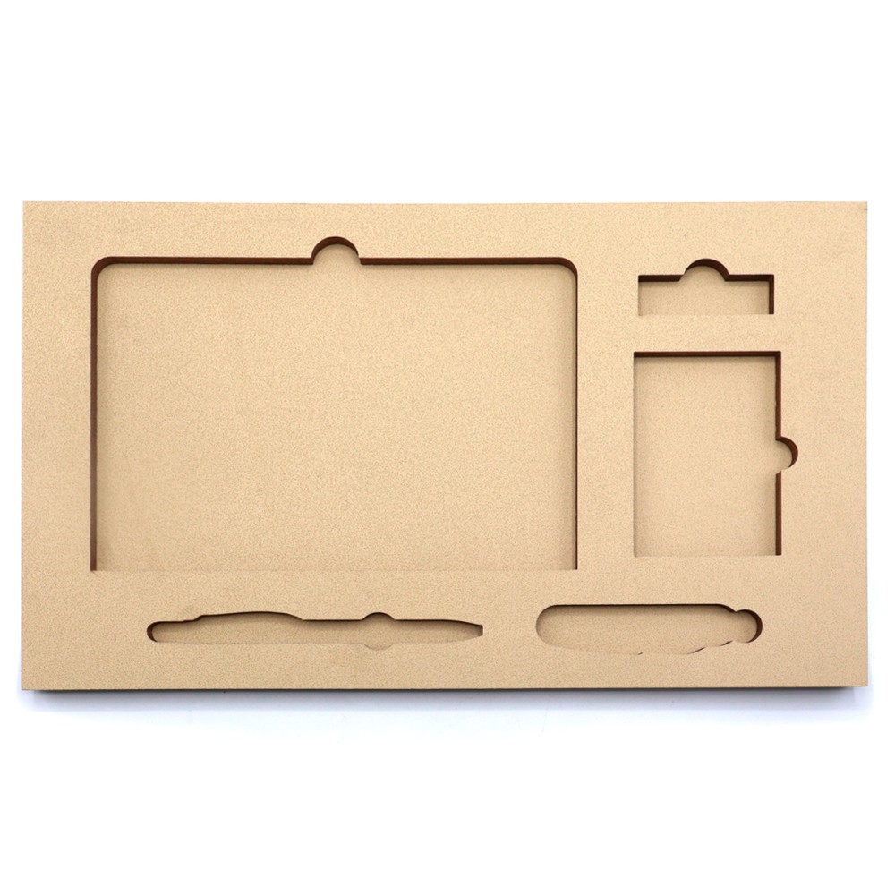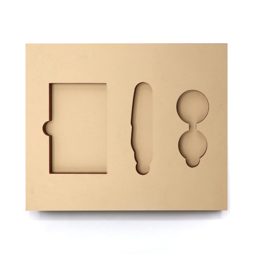 Ложемент, выполненный из бежевого ЭВА материала, представляет собой многослойную конструкцию, состоящую из двух слоев: нижнего толщиной 10 мм и верхнего — 10 мм. Согласно утвержденному макету, проемы для размещения предметов могут быть расположены как в одном, так и в обоих слоях. Финальная стоимость ложемента зависит от параметров вашего будущего ложемента, выбранных в калькуляторе карточки. Возможная площадь вырезки ложемента - от 1см2. Пожалуйста, прикрепите к заказу оригинал-макет в формате .pdf Данный ложемент идеально подходит для коробки Dizzy арт. RUS5055.19