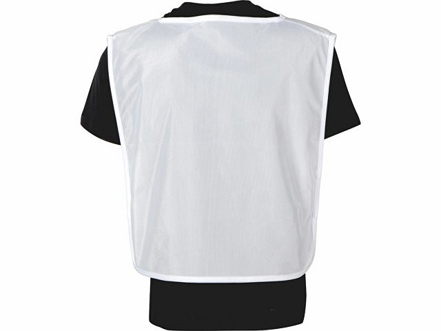 Универсальная спортивная манишка белого цвета. Боковые резинки обеспечивают удобство одевания и снятия. Материал манишки легко стирается и быстро сохнет. Манишка отлично подходит для маркировки спортсменов либо для разделения команд.