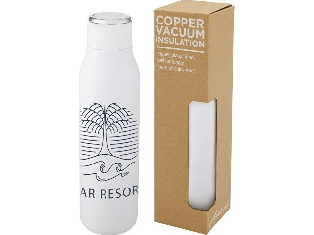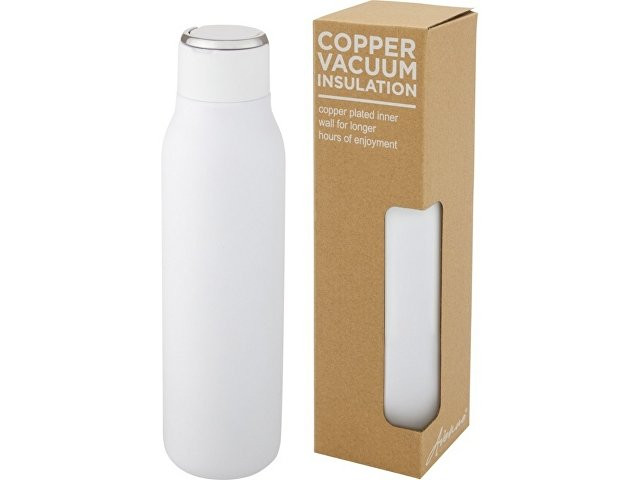 Бутылка Marka имеет вакуумную конструкцию из нержавеющей стали с медной изоляцией, которая сохраняет напитки горячими или холодными в течение нескольких часов. Изолированная конструкция из нержавеющей стали 18/8 предотвращает образование конденсата на внешней стороне бутылки, а модная финишная отделка порошковым напылением делает ее чрезвычайно прочной. Она также имеет навинчивающуюся крышку, устойчивую к проливам, и прочную, выполненную из цинкового сплава, петлю для руки. Не содержит БФА, испытана и одобрена в соответствии с немецким законодательством о безопасности пищевых продуктов (LFGB). Проверена на содержание фталатов и одобрена для использования в соответствии с правилами REACH. Подходит для большинства стандартных автомобильных подстаканников. Объем 600 мл. Рекомендуется мыть вручную. В подарочной коробке из переработанного картона.