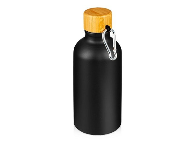 Матовая спортивная бутылка "Hip S Bamboo" с карабином и объемом 400 мл, черный