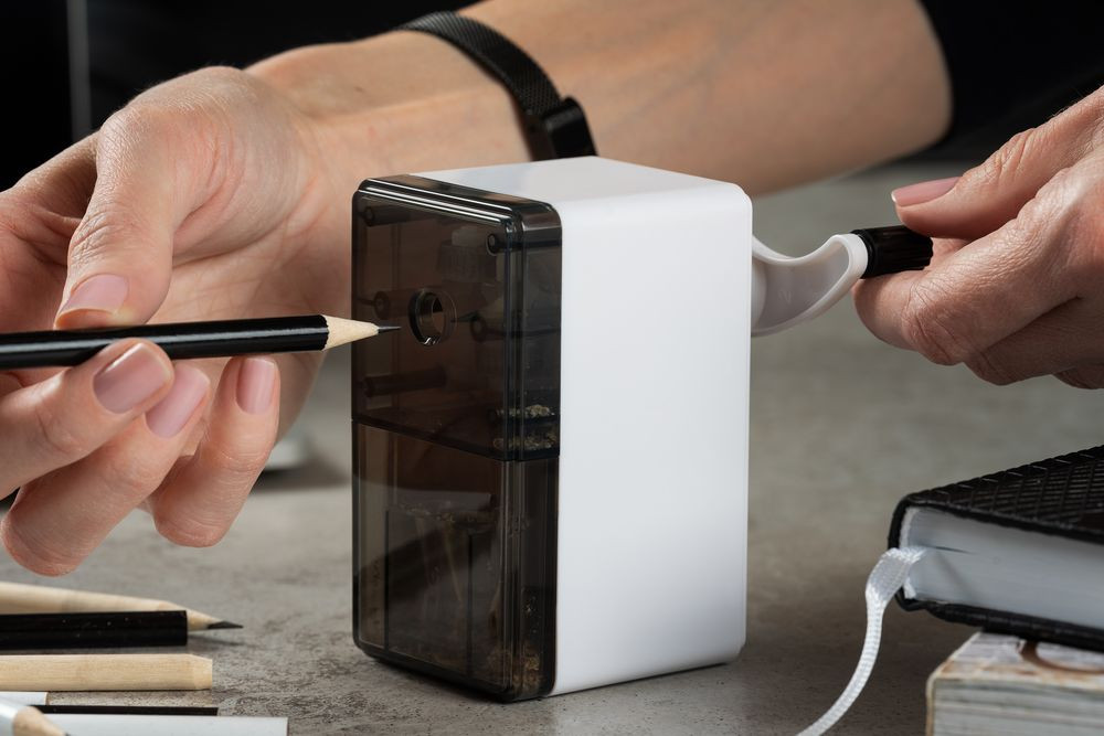 Вращающийся роликовый нож обеспечивает быструю и острую заточку карандашей диаметром до 8 мм. Точилка оснащена переключателем степеней заточки, что позволяет качественно заточить как цветные (с более тупым углом заточки), так и чернографитные карандаши.