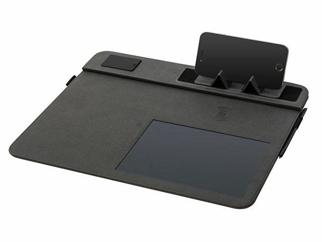 Настольный органайзер сочетает в себе сразу несколько устройств: беспроводное зарядное устройство, планшет со стилусом для заметок, подставку для смартфона и коврик для мышки. А еще нанесенное на Multi Pad лого подсвечивается! Заметки можно фиксировать без траты бумаги с помощью стилуса на безопасном матовом экране. LCD - экран оснащен функцией мгновенной очистки. Чтобы очистить поле планшета, нужно просто нажать на кнопку, расположенную возле экрана. Функция очистки по кнопке работает только при подключенном кабеле, при отключенном кабеле заметки никуда не исчезнут. Смартфон можно расположить для беспроводной зарядки в специальной отмеченной области или установить на специальные держатели для комфортного использования в наклоне. В комплекте - зарядный кабель USB-A – USB-C длиной 100см, инструкция и стилус. • поддерживает быструю беспроводную зарядку до 10 Вт • логотип наносится на специальное поле в левом верхнем углу — выгравированное изображение светится, если органайзер включен в сеть • подставка для смартфона раскладывается при помощи липучек • планшет для записей с возможностью моментальной очистки (стилус в комплекте) • универсальное компактное решение для рабочего стола • дополнительный USB выход