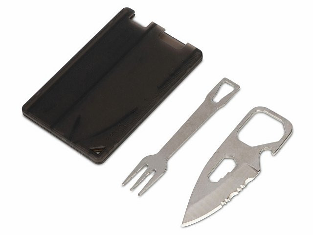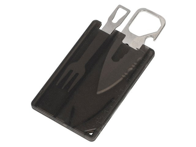 Компактный мультитул в форме карты. - Линейка - Открывашка для бутылок - Нож - Шестигранники - Вилка - Окно для петельки