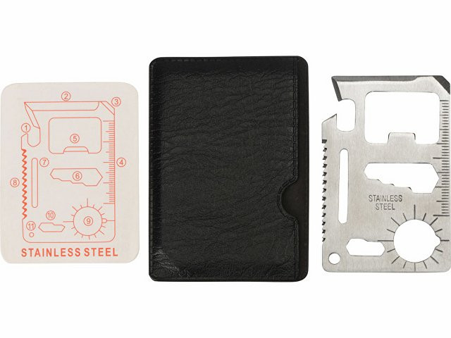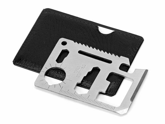 Мультиинструмент «Helper mini» в виде карты объединяет в себе 10 различных приспособлений: консервный нож, лезвие, плоскую отвертку, линейку, открывалку для бутылок, гаечный ключ на 4 различных размера головок болтов, ключ для барашковых гаек, пила, транспортир, гаечный ключ на 2 размера. Мультиинструмент выполнен из нержавеющей стали, что обеспечивает легкость, прочность и долгий срок эксплуатации «Helper mini». Карту можно подвесить на брелок или карабин (не идут в комплекте), продев их сквозь специальное отверстие. Для хранения прилагается специальный чехол из искусственной кожи (ПУ), который не даст острым краям мультиинструмента нанести ущерб вашей одежде или содержимому сумки, а также защитит «Helper mini» от загрязнений. Чехол плотно облегает мультиинструмент, имеет удобный крой и выемку для пальца, поэтому вытаскивать его удобно и легко. - нержавеющая сталь, стойкая к коррозии и механическим повреждениям - 10 функций - чехол удобного кроя из искусственной кожи защитит мультиинструмент от загрязнений, а карманы — от острых краев изделия - отверстие под брелок или карабин Приспособления, входящие в «Helper mini»: 1. консервный нож, 2. лезвие, 3. плоская отвертка, 4. линейка, 5. открывалка для бутылок, 6. гаечный ключ на 4 различных размера головок болтов, 7. ключ для барашковых гаек, 8. пила, 9. транспортир, 10. гаечный ключ на 2 размера, 11. отверстие под крепление к брелку или карабину