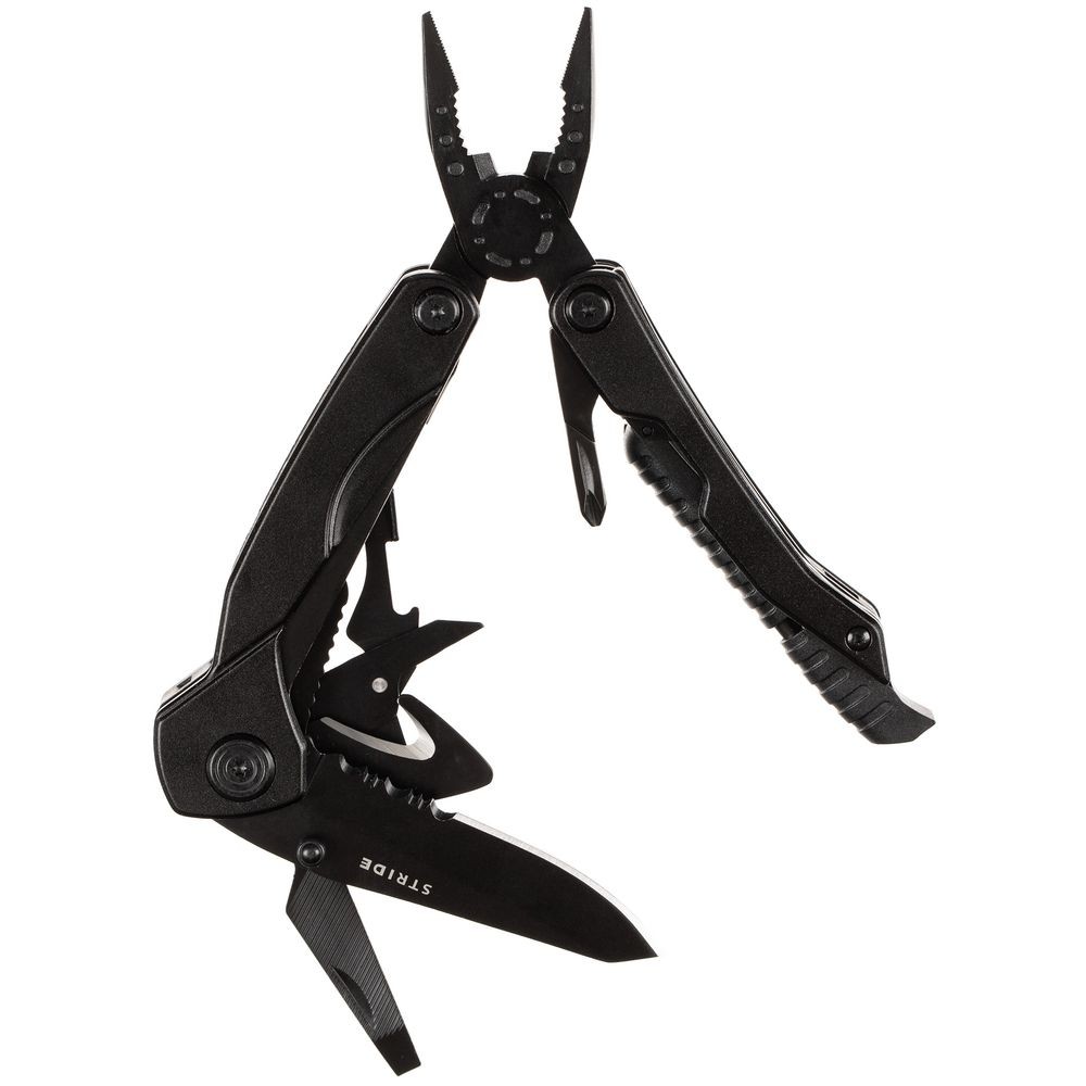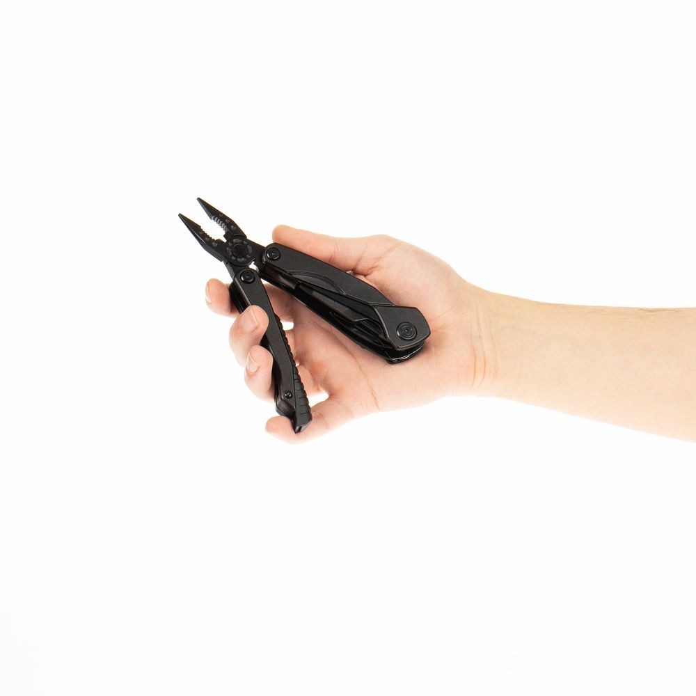 В комплекте мультитул, чехол и набор из 9 съемных бит.