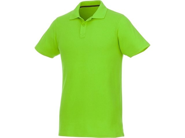 Мужское поло Helios с коротким рукавом. Отрезной-отрывной ярлык для комфорта. Воротник гладкой вязкой в рубчик. Планка с двумя пуговицами. Двойная строчка на воротнике и внизу изделия. Пуговицы в цвет изделия. Полоска на горловине в контрастном цвете. Трикотаж Piqué, 100 % хлопок. 180 г/м².