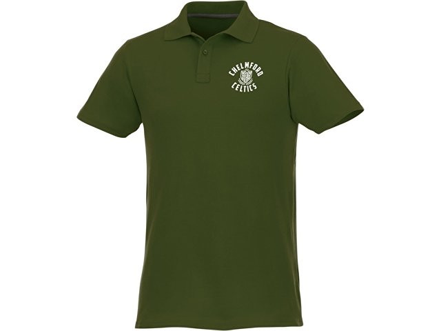 Мужское поло Helios с коротким рукавом. Отрезной-отрывной ярлык для комфорта. Воротник гладкой вязкой в рубчик. Планка с двумя пуговицами. Двойная строчка на воротнике и внизу изделия. Пуговицы в цвет изделия. Полоска на горловине в контрастном цвете. Трикотаж Piqué, 100 % хлопок. 180 г/м².