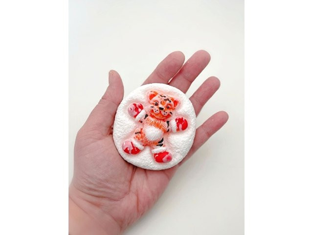 Расчет нанесенияПревосходное мыло ручной работы в форме веселого тигренка на "снегу". Каждый тигренок по-своему уникален. Поставляется в прозрачном пакете с бечевкой, который можно забрендировать стикером с дизайном заказчика.