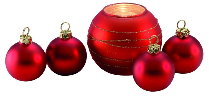 Набор: 4 ёлочных игрушки и подсвечник, красный