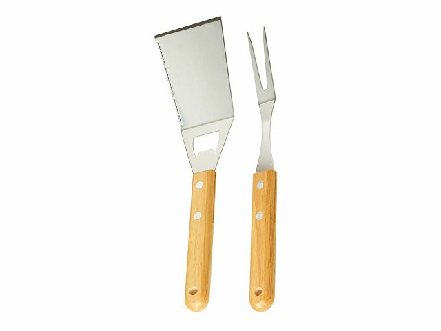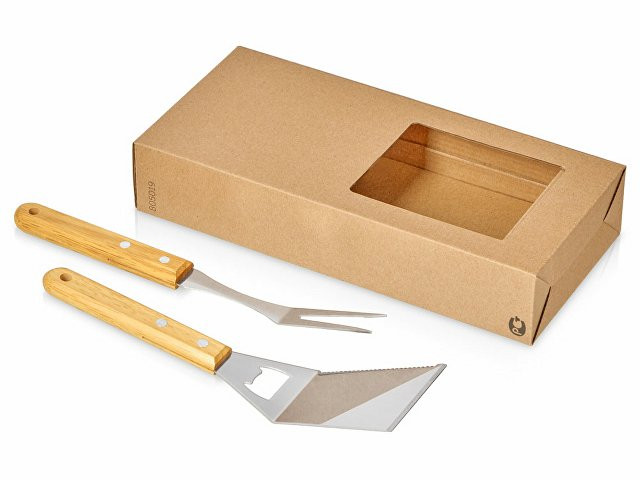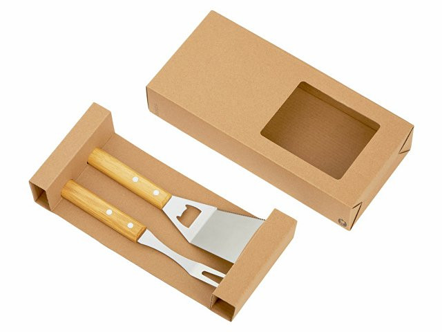 Расчет нанесенияНабор аксессуаров для барбекю "Grill Master" с деревянными ручками состоит из двух предметов: лопатки и вилки. Лопатка также имеет дополнительную функцию - открывалки для бутылок. Набор поставляется в крафтовой коробке с окошком.