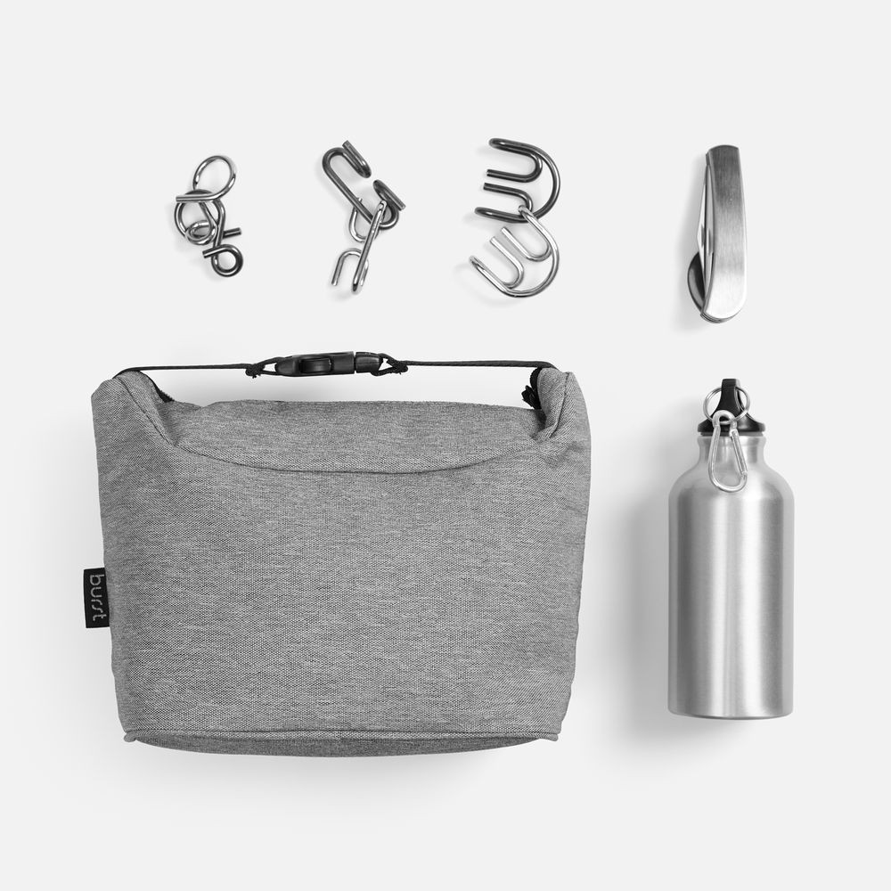 Нержавеющий столовый прибор выручит при желании перекусить вне дома или офиса, термосумка сохранит еду теплой, а прочная алюминиевая бутылка — напиток горячим. Все необходимое всегда под рукой. А чтобы перезагрузить голову, добавлена увлекательная головоломка — источник свежих идей.Емкость бутылки 400 мл.