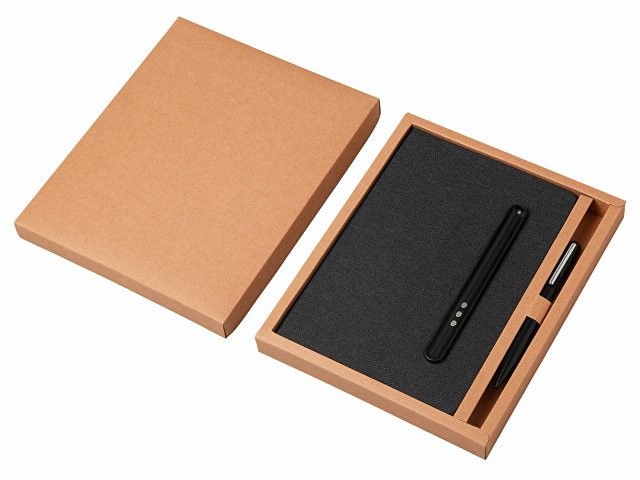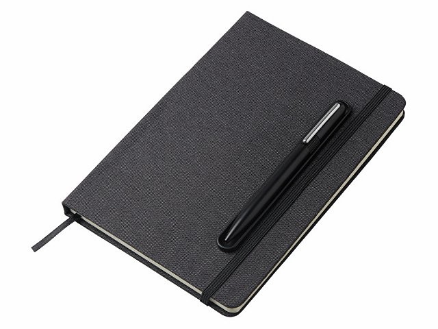 Набор блокнот А5 с магнитным держателем для ручки и подставкой для телефона и металлической шариковой ручкой "NotaBene", черный