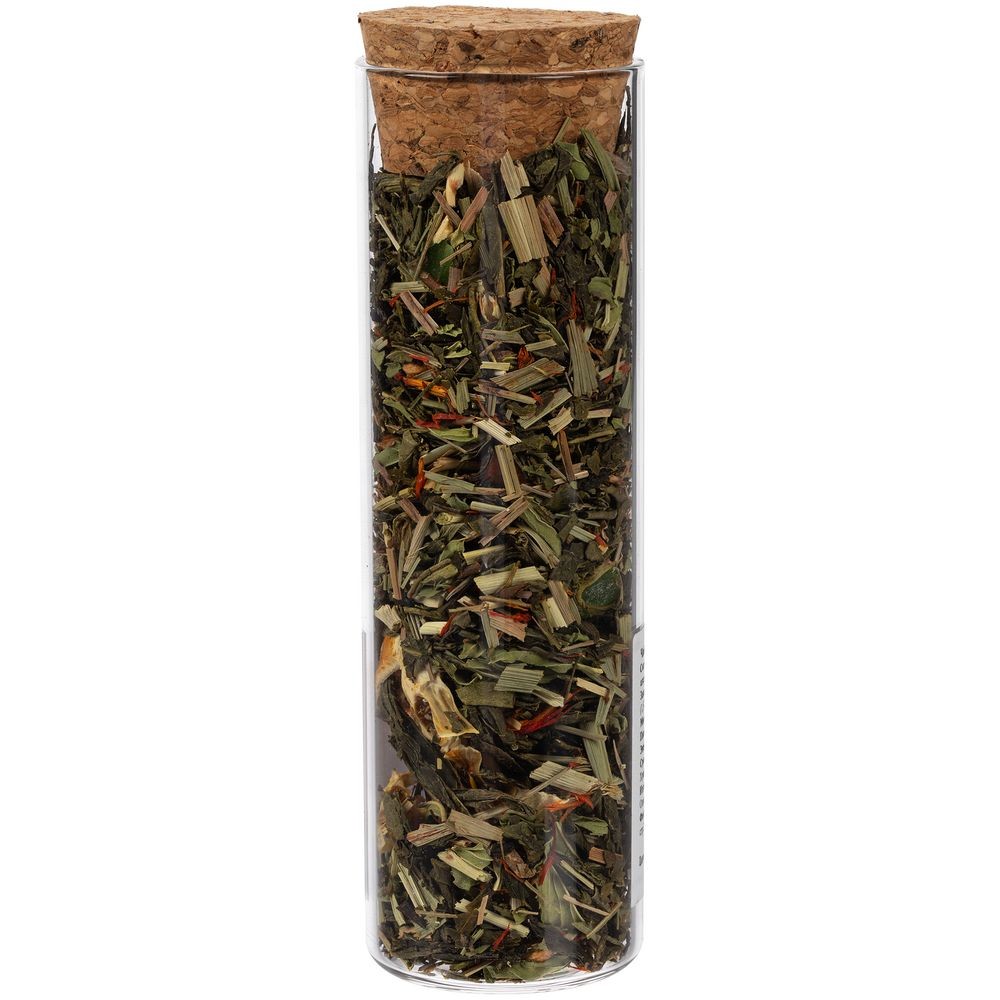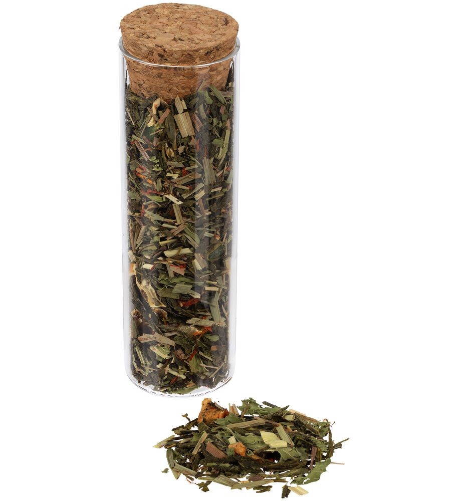 - чай зеленый ароматизированный «Хорошее настроение» (состав: зеленый чай сенча, лимонная трава, календула, мята, сушеное яблоко, сушеный апельсин, сушеная клубника, ароматизатор «лайм», ароматизатор «мята»), вес 25 г.