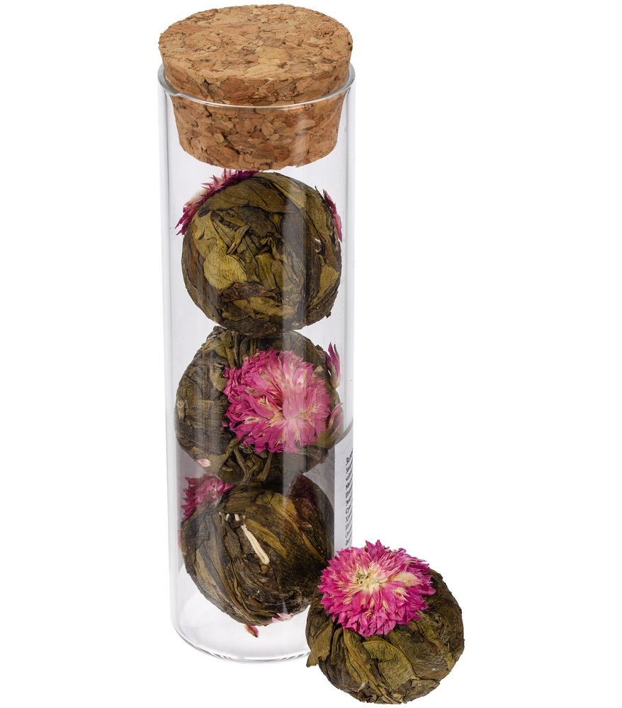 - связанный зеленый чай с цветами «Нефритовый Лотос» (состав: зеленый чай сенча, цветы хризантемы), вес 25 г — благодаря особой технологии скрутки чай, словно цветок, распускается в чайнике или чашке, при заваривании рекомендуем использовать прозрачную стеклянную посуду;